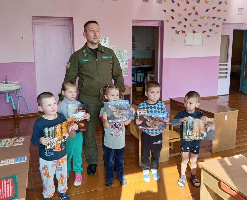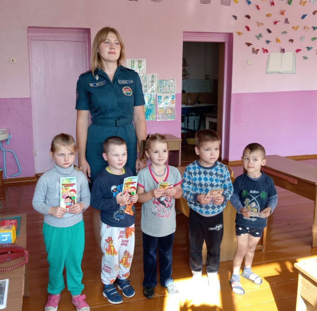 В ходе беседы ребята вспомнили правила поведения при пожаре, номера телефонов служб спасения, правила поведения в лесу. Во время игры «Опасно-безопасно» еще раз закрепили, какие предметы представляют опасность для жизни и здоровья. Гости вручили детям буклеты и памятки по противопожарной безопасности.