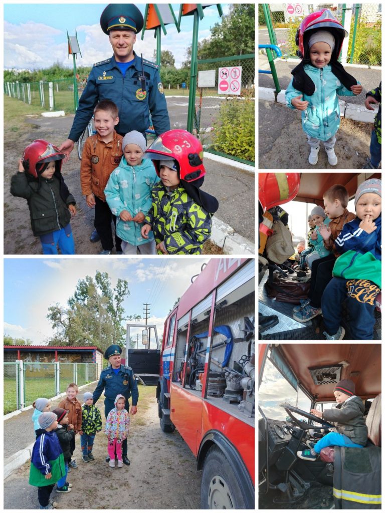 Дети с большим интересом рассматривали инструменты, которые используют спасатели при тушении пожаров, посидели в спецмашине, а также примерили средство защиты — шлем.