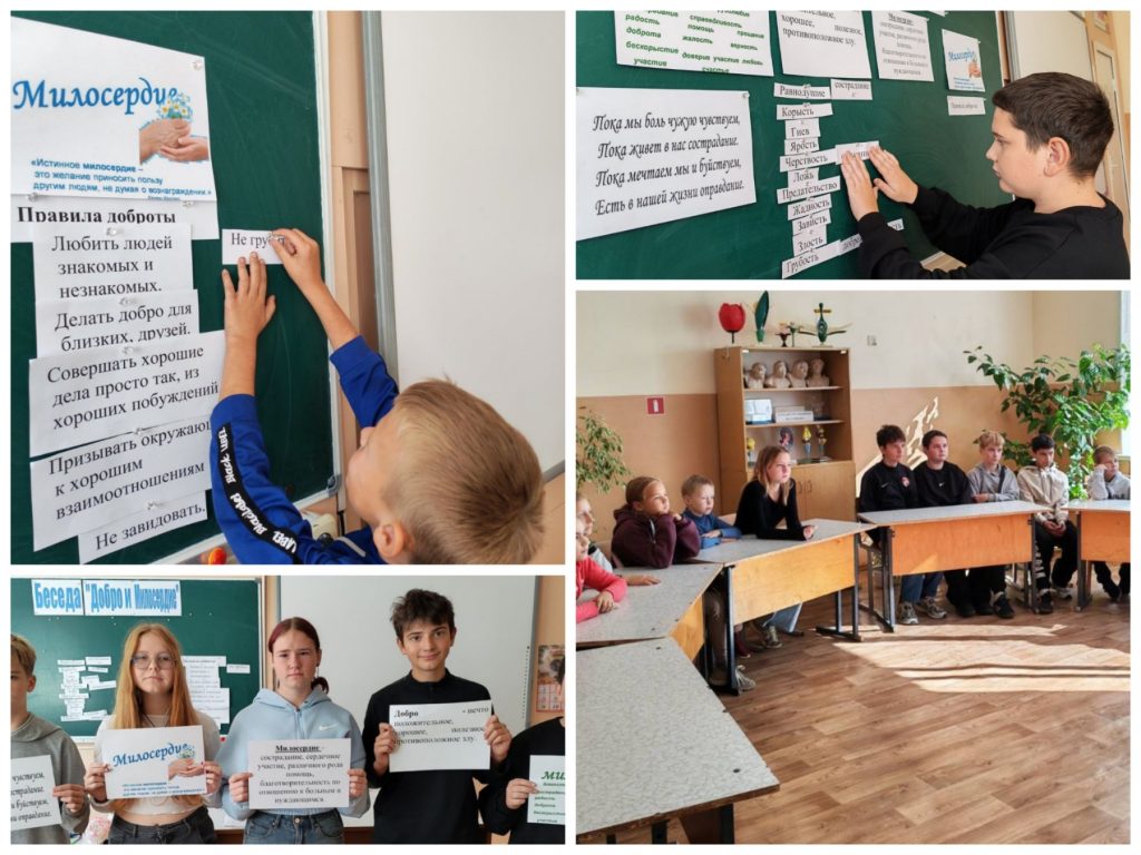 А так же было проведена беседа «Добро и милосердие». Ребята познакомились с понятиями «Добро» и «Милосердие», правилами доброты, посмотрели видеоролик о доброте и милосердии, составляли пословицы на тему. Ребята с удовольствием участвовали в обсуждении темы, связанной с добротой, заботой, сочувствием, милосердием.