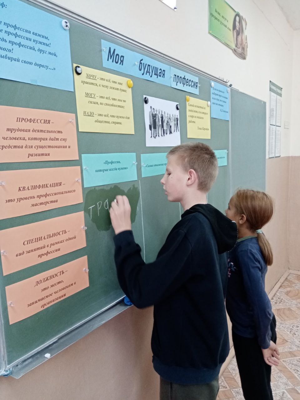 Учащиеся 5-9 классов стали участниками актуального диалога «Моя будущая профессия». В ходе мероприятия ребята вспомнили самые забытые, самые важные и самые нужные профессии, обсуждали ситуации, участвовали в тренинге, целью которого было формирование позитивного отношения к труду, к осознанному выбору своей будущей профессии.