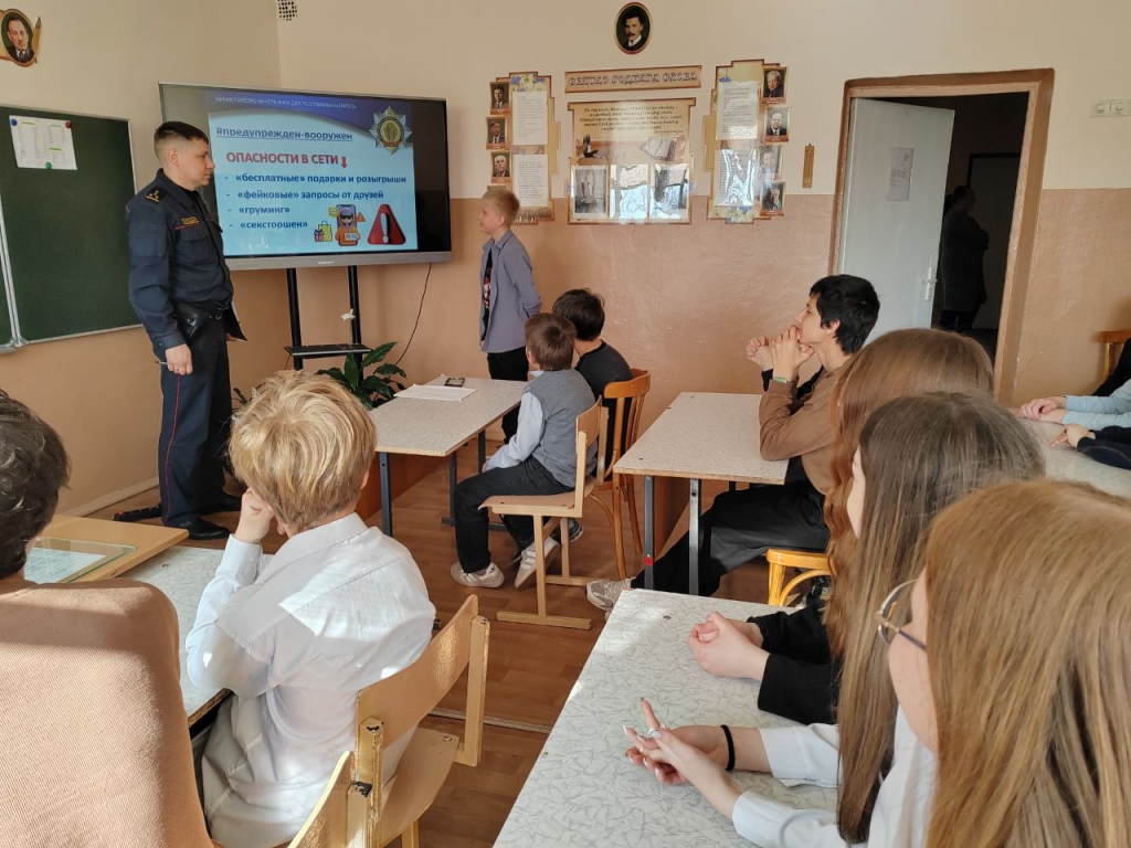 Половая неприкосновенность: инспектор разъяснил правила личной безопасности и правовые аспекты этой темы. Кибербезопасность: ребята посмотрели тематические видеоролики о том, как не попасться на уловки мошенников в сети и защитить свои данные. Экстремизм и наркомания: школьникам напомнили об ответственности за участие в противоправных действиях и пагубном влиянии запрещенных веществ на жизнь и здоровье.
