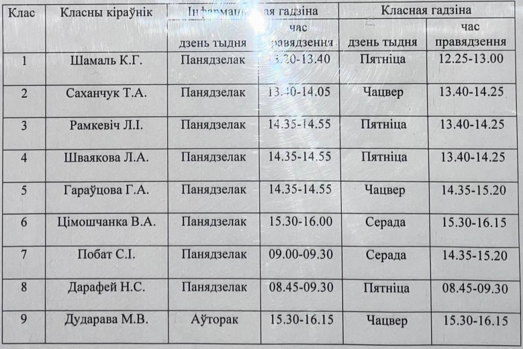 РАСПИСАНИЕ КЛАССНЫХ И ИНФОРМАЦИОННЫХ ЧАСОВ